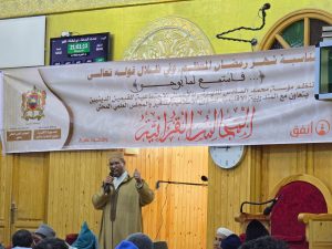 في أجواء إيمانية مفعمة بالخشوع، احتضن مسجد تشكا بتنغير مجلسا قرآنيا مميز بمناسبة شهر رمضان المبارك، نظمته الوحدة الإدارية لمؤسسة محمد السادس للنهوض بالأعمال الاجتماعية للقيمين الدينيين، بتنسيق مع المندوبية الإقليمية للشؤون الإسلامية والمجلس العلمي المحلي بتنغير.بحضور رئيس الوحدة الإدارية المندوب الاقليمي رفقة عضو الوحدة الذي القى كلمة بالمناسبة مذكرا بخدمات وبرامج المؤسسة و مستحضرا ذكرى وفاة المغفور له محمد الخامس طيب الله ثراه، في محطة روحانية تجمع بين تلاوة آيات بينات من الذكر الحكيم وتكريم عدد من القيمين الدينيين والقراء اعترافا بعطائهم المتواصل في خدمة بيوت الله.